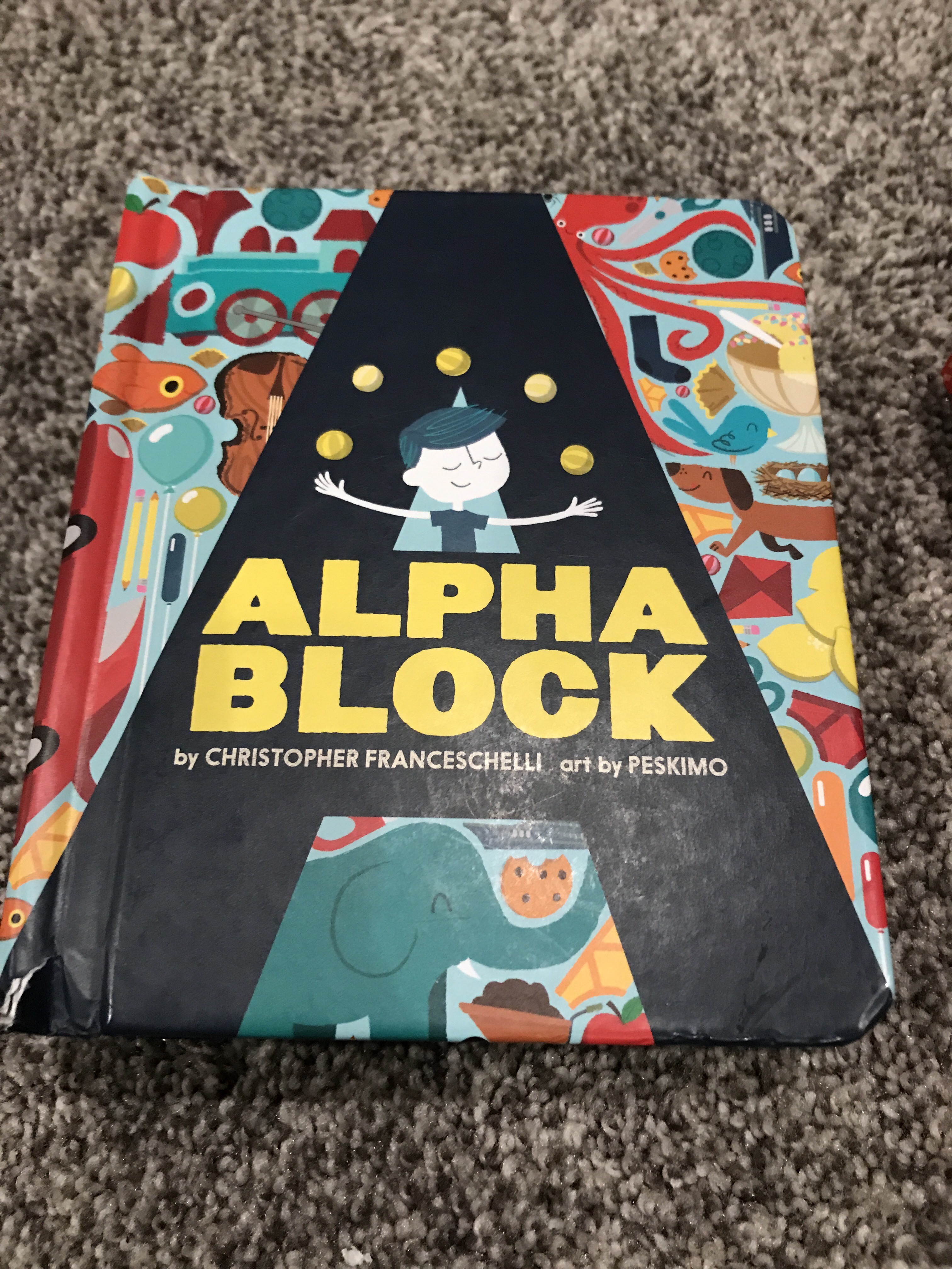 I ran across the “block” books by Christopher Franceschelli three years ago when Charlie was just a baby. I made a note of them in my book file so I would remember to buy one when he was old enough for his first board book.I bought the Alpha Block book …