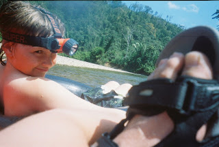 The place where this excursion takes place reminds me of some of the National Parks you would find here in the U.S. I don’t know if it was a National Park, but it reminded me of that kind of place with bathrooms, showers, and a couple little gift shop type stands. There were piles of tubes and life jackets from what looked like several different tour companies. Our guides took us to their supply passing out a life jacket and tube to each person as well as a head lamp. We weren’t required to wear a life jacket, but we did have to have one with us. Don’t my mom and dad look cute with their headlamps on! I do have to say that I didn’t like wearing my headlamp.. it was itchy and smelly.. ugh…. lots of people had worn it before me, I’m sure.