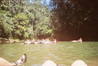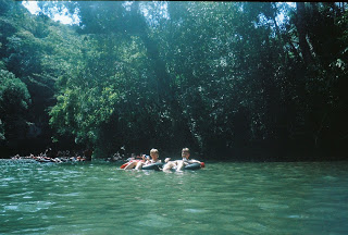 I didn’t bring our good camera on this excursion since it was all about water! I have a waterproof bag for our camera, but I’ll have to practice with it some more before I actually take it out somewhere. I took a few pictures with it before we left and they all came out with “dots” all over the pictures and I’m not sure why. Having done this excursion now, another time I wouldn’t hesitate to take my good camera because I know I could keep it in the waterproof bag while actually tubing, but I could take it out at other times.. such as during the walk through the rainforest. So, these pictures were all taken with a disposable underwater camera and aren’t the best quality! But, I’m sure glad we have these pics!