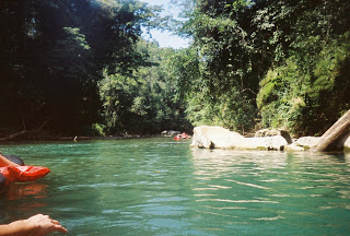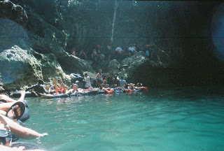 After we arrived at the “jumping in” spot we had to wait awhile for some other groups to clear out. Evidently, these were the groups from the ship who weren’t receiving much help from their guides. So, our guides went down to help them get all of their people into the water and floating on their way so he could get us in the water. I missed getting a picture of Josh and Tim jumping off the cliffs into the water, but I heard them! Here is a picture of the area where you either walk down to the edge and jump on the tube or jump from WAY UP on those cliffs down to the water where a guide will hand you your tube.