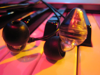 My ear phones sitting on the keyboard waiting for me. Sometimes I put them in before we go on the stage and other times I leave them on the keyboard and put them in after we get out there. These are SHURE E something or others… 2 or 3, but …