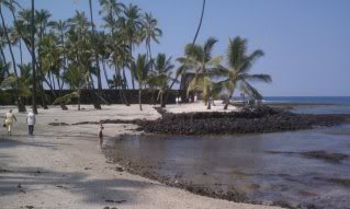Our first on stop on the Big Island was Pu’uhonua o Honaunau located about 45 minutes from Kona. Do you see my parents on the left and Nathan by the water? From the Visitor Center we walked along the 1871 trail toward the Ki’ilae Village…. where we ventured off the …