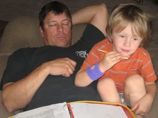 Tim worked a lot this winter, but the few days he wasn’t able to work he offered to help Nathan or Josh with their school work. Here he’s helping Nathan with his preschool… hmmm… no wonder the boys would rather have dad help them instead of me (LOL).