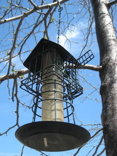 This is our one and only bird house which sits outside our library room window. We have several problems with bird houses….CATS…..several of them. So, unfortunately, my fear is that the bird houses which are supposed to be a nice place for birds to come eat and be safe have …