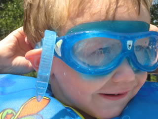 First things first you know (LOL)! Nathan HAD to have some goggles because his sisters always wear goggles when they swim. Of course, they were in synchronized swimming for most of his life (LOL). When you take “regular” swimming lessons, you don’t wear goggles. It wasn’t very easy convincing him …