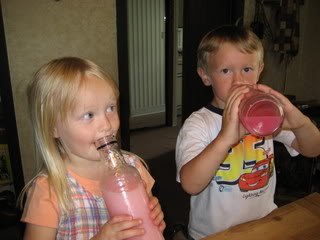 Nathan and his friend, Sami were doing their part to help with the graduation preparations! (LOL)! The original plan was to put flowers in various vases that we could gather up from friends and family. However, the day before the party Amanda came up with the idea of using SoBe …