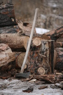 Since we haven’t used our wood splitter in a good ten years, Tim had to split this pile the old fashioned way. He split enough wood today to last us through the next winter weather event which seems to be headed our way early this week.