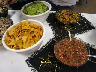 One of my co-op friends, Joan, offered to make her homemade salsa which is the tomato and cilantro one you see in the foreground. Thanks much, Joan! We really appreciate your help.