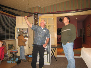 My parents hosted the annual Train Club Christmas Party at their house this year. She had her friends, Bonnie and Jerry, come to help as well as all of us. It was a potluck style dinner which they had after a short club meeting. After the meeting and dinner, everyone adjourned to the garage to look at all of my dad’s train stuff. Here are my mom and dad: