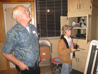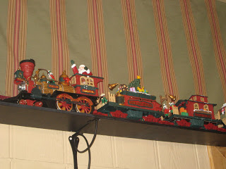 My parents hosted the annual Train Club Christmas Party at their house this year. She had her friends, Bonnie and Jerry, come to help as well as all of us. It was a potluck style dinner which they had after a short club meeting. After the meeting and dinner, everyone adjourned to the garage to look at all of my dad’s train stuff. Here are my mom and dad: