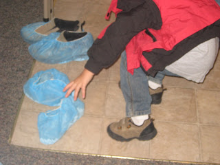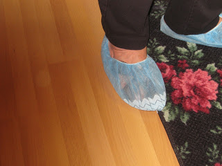 Mom had a bunch of these scrubs that you put over your shoes so people wouldn’t have to worry about taking their shoes off. I think I need to get a box of these! Ours are almost all gone.