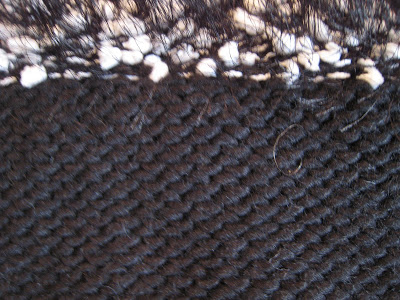 Here is a close up picture of the bag before being felted. You can see the very large knit stitches. The decorative yarn at the top will not felt which will make it pop out from the rest of the purse.