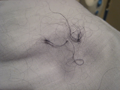 Here is the cloth after one cycle. I put a new one in for each wash cycle. You can also see all of the yarn that has come off during the wash. It comes out in big clumps.