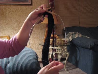 The two purses I’ve made have been knit on a round hoop with needles attached to each end.