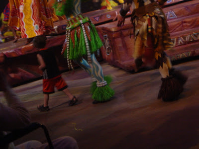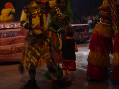 This year only Grandma, Grandpa, and Nathan went to the show. They went while the rest of us were riding the Expedition Everest ride. After we met back up with them, we found out that one of the performers came over to where they were sitting and asked Nathan to join them for the parade of characters. I’m not surprised he went since he is quite social, but it was a little out of his element. With all of the painted faces, costumes, large animals, and noise I wouldn’t think he’d want to go, but he did and grandma was able to catch a few pictures of Nathan as he paraded around with the man on stilts seen in this picture. He went all around the theater with him!