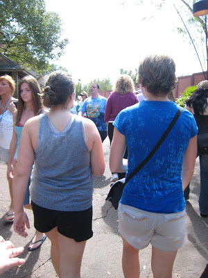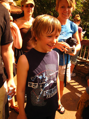 We looked at this ride while waiting for our Fast Pass to Expedition Everest. We decided we did NOT want to do it after encountering some people coming out of the ride who were COMPLETELY SOAKED! After our Expedition Everest ride, Josh decided he really wanted to do try the Kali River Rapids. So, we went over there, got in line, etc., and THEN he backed out on us. Tim was going to stay with him while the rest of us rode the ride since we were already in line. A few minutes later Tim and Josh rejoined us after Tim took him to see that it wasn’t a “wild” river. After he saw that the rafts run on rails he decided to go.