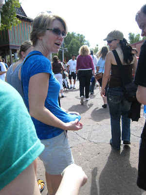 I don’t know exactly what Melissa was saying, but I think she was inquiring why she and Emily were the ones who ended up getting soaked… I’m sure blaming it on Josh was part of the fun!Melissa and Emily were both wearing some of Amanda’s clothes since their luggage was “lost.” Later that day, my brother, Troy, went to the airport to get their luggage! At least it came before we left on the cruise. We weren’t certain how quickly it would come since we were told the airport in MINN had been closed for a time due to the snow storm that went through there.Here you can see that the girls (above) were SOAKED, while Tim (below) was just a little wet.I was glad to see there was an enclosed waterproof area in the center of the raft where we could put our bags and cameras. I sure didn’t want my camera to get wet! I didn’t take any pictures along the way on this ride (nor very many other rides for that matter). The ride was fun! I’m glad we got to do it this time around since we didn’t to it the last time we were in DW. You twist and turn along the trail and depending on where you’re sitting in the raft you may or may not get hit by one of the geysers. Toward the end of the ride you go under a bridge where onlookers can push buttons to get you even more wet. Josh was hollering at them to soak us which didn’t help (LOL). It was a nice warm day and we all dried off pretty quickly.