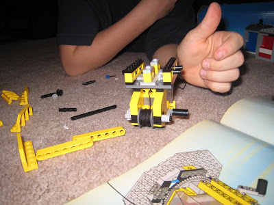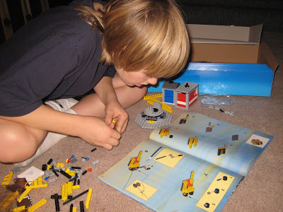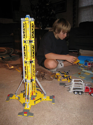 Josh received this lego crane kit from his grandparents for Christmas. It was the PERFECT gift to give him and it was great timing that we opened packages with them the day before Christmas Eve. This gave him something to do all Christmas Eve morning while the rest of us were getting ready for services, cooking, cleaning, etc. First, there was a pile of pieces all over the living room floor. Josh studied the book and got to work.