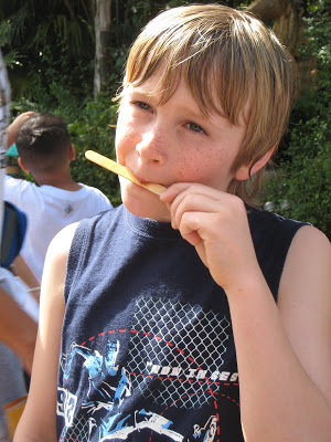 No, we didn’t just let him eat junk food for two days while at DW. Here he’s snacking on a bag of baby carrots!