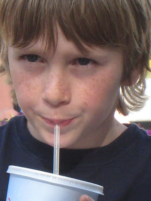 Josh didn’t let me get any pictures of him eating either, but I got this one of him having a drink of something… probably lemonade.