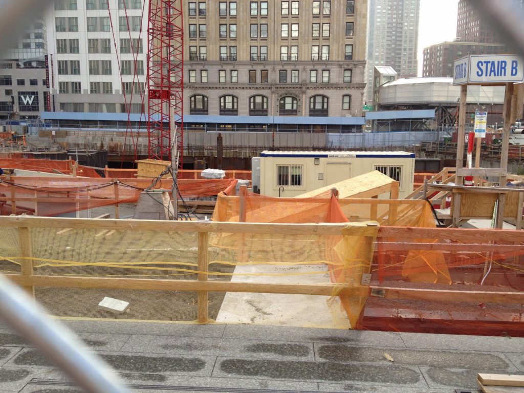 Venture upstairs and you’ll find the Back Stage Deli’s eating area which overlooks The World Trade Center site. Because you really can’t see inside to the construction area from the ground due to the boards covering the perimeter’s security fence, you’ll want to take a look from up here if seeing the actual site is on your list.
