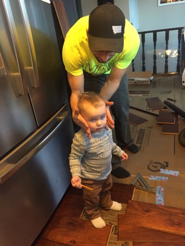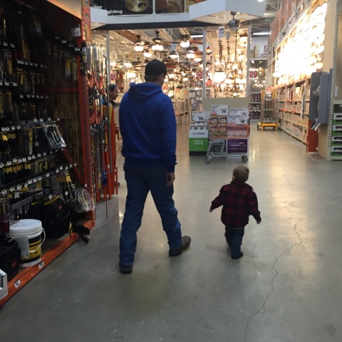 Uncle Josh and nephew, Charlie, cruising the hardware store aisles while Amanda and I shopped for tile for their entryways.