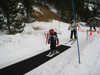 Nathan decided to try skiing again this year mostly because the resort has replaced the old style tow rope with the new Magic Carpet shown above. From what I hear, it’s WONDERFUL! Perhaps I should even give skiing another try! Our friend Stacie helped Nathan for an hour or so …