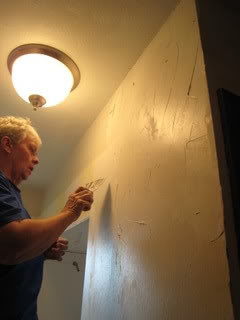 We’re finally making some noticeable progress in the bathroom. A few weeks ago my mom came over and textured the walls. This picture shows the previous style texture on the left and the new, rough/rugged style, texture on the right. Here’s what it looks like after we primed it. Josh …