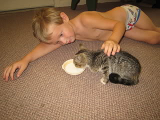 “Mom, take this picture for yours blog.” – Nathan Here is more of what Nathan had to say about this picture:“I love playing with cats. I love myself. And, I love Caser (our dog). I love my mom (followed by lots of kisses). I love “evrenbody” all my family and …