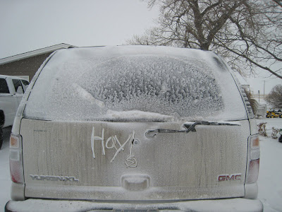 Thursday morning it was STILL snowing when I took Em into volleyball. Above we are just coming in to town at roughly 5:30 a.m. It snowed the whole time we were in town. I stopped to do a few errands and the YUKON wouldn’t start. Fortunately, I was able to …