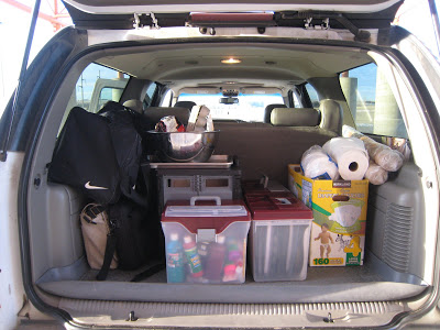 Here we are unloading everything we need for co-op yesterday morning. LOTS of things today…. everything you saw in the pile from the last time I mentioned co-op, plus everything to make chocolate chip cookies, extra volleyball bags so we could get ready for the day at the gym or …