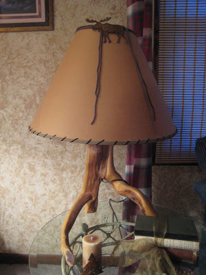 We have two of these lamps and they both sit in our lodge style living room. My dad made these lamps when he was in high school. We found them in the garage, dusted them off, and brought them in the house. We added some lampshades, little elk embellishments with …