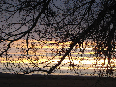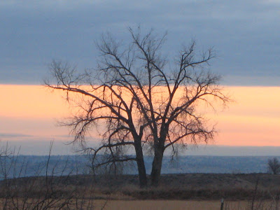 This morning’s sunrise looking out our library window…. to the north east. This is on the land we have across the road from our house. There’s one lonely tree over there all by itself (LOL). We can see it looking to the left out our library window and it’s the …