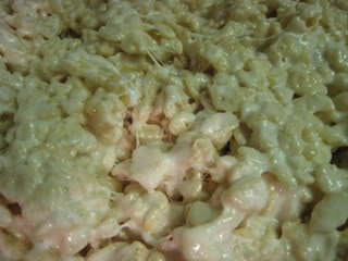 We were able to use what was left in the bowl and add what we thought would be the right amount of rice krispies now that we were short so many marshmellows (LOL).