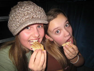 Here is Emily working on her tortilla with her friends.