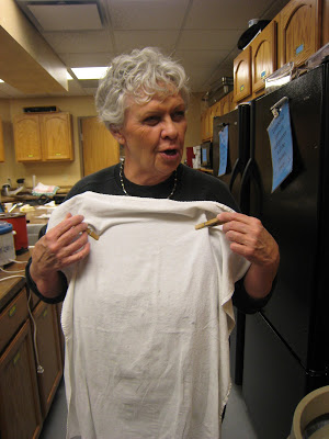 This is as good a place as any to show my mom and her “apron.” She has always clothespinned a towel to her shirt while cooking. One of her relatives sent her a “real” apron from Arizona so she wouldn’t have to do this. She tried it for a day and went back to her towel. I think she didn’t want to get her apron dirty.