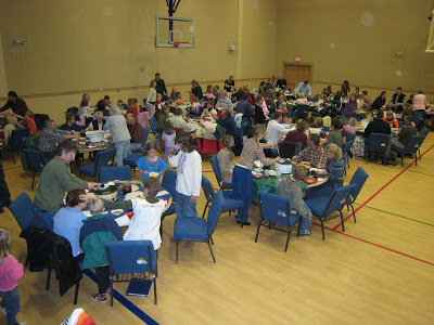 Here we are as everyone is sitting down to eat. There were over 120, but I didn’t take an exact count.