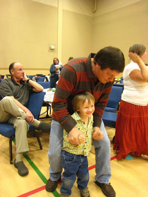 After dinner, everyone joined in the Mexican Hat dance which was taught by some of the Dialectic kids. You can see Amanda in the center of the bottom of this picture. We were excited that she came to the dinner and joined in the activities. Here she is talking to the kids who are “calling” the dance.