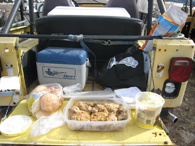 We packed our lunch and had a picnic up there at the top of the mountains. We set everything out on the back of our JEEP! Fried chicken, potato salad, and more.
