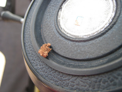 We had mud FLYING EVERYWHERE when Tim spun out a couple of times. Here’s a piece of this clay like mud on the steering wheel. And, below, I still can’t get over the beautiful colors in these mountains!