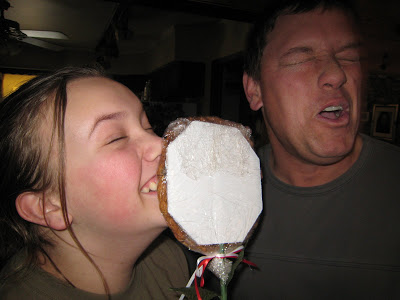 We don’t typically do a lot for Valentine’s Day, but we do have a few traditions. The kids all get Valentines from the grandparents. My mom and dad sent them each a Valentine in the *mail* which was a special treat since the kids don’t usually get anything in the mail… and the Valentine’s came with $$ which is always FUN for the kids. Tim’s mom made these YUMMY cookie flowers.