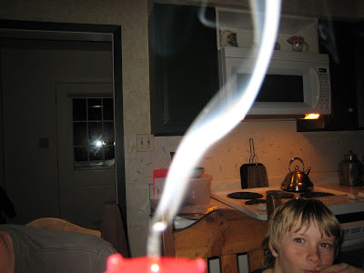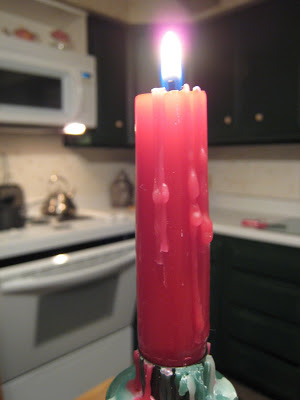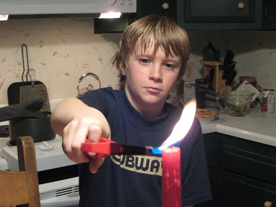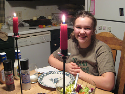 One of our few traditions is to have a candle light dinner. Here Josh is lighting the candles.